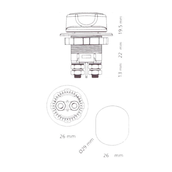 Nodrošiniet maksimālu drošību un ērtību Jūsu transportlīdzeklim ar masas slēdzi Ø29mm 32V/100A. Šis slēdzis ir izcils risinājums, lai pārtrauktu strāvas padevi, novērstu akumulatora izlādi un aizsargātu transportlīdzekļa elektrisko sistēmu.