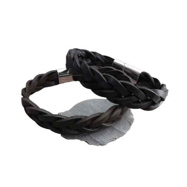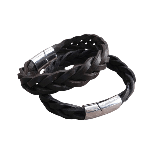 Pīta ādas aproce ar sudraba krāsas metāla aizdari AMIGAZ balck