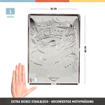 Praktiska un krāsaina: izturīga metāla zīme DIN A5 formātā ar izliekumu, motīvu reljefu un iepriekš izurbtiem caurumiem ērtai piestiprināšanai pie sienas