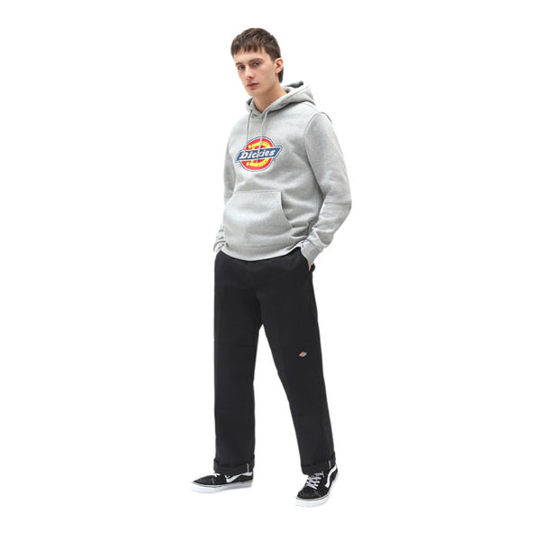 The Icon Logo Hoodie is one of the core pieces at Dickies; a classic regular fit men’s hoodie. Featuring the iconic Dickies logo screen print on chest; front pouch pocket and a cotton drawstring hood. Made of a poly-cotton; 60% cotton; 40% polyester; brushed fleece that is durable; wrinkle and shrink resistant. Available in a wide range of classic and seasonal fade resistant colors. A timeless relaxed piece made for everyday wear.
