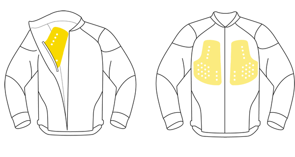 Piemērots lietošanai moto apģērbā ar paredzētu krūšu aizsarga kabatu, nodrošinot papildu drošību ikdienas braukšanā un aktīvākos izbraucienos.